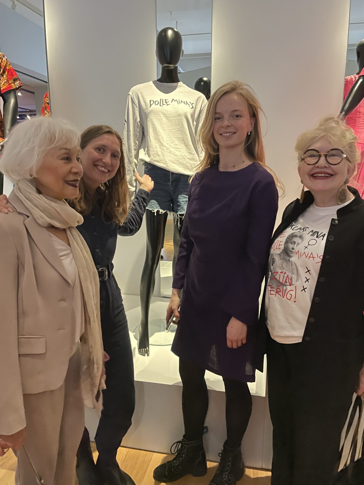 Dolle Mina trui bij Dresscodes, Paleis het Loo Gepubliceerd op: 9 oktober 2025 foto: Een delegatie van negen Dolle MIna’s woonde de opening van de tentoonstelling ‘Dresscodes’ op 8 oktober bij Voor de tweede keer figureert Dolle Mina op Paleis het Loo. In de tentoonstelling ‘Tegenspel – de Eeuw van Vrouwelijk Koningschap’ (4 februari – 31 augustus) stonden de drie koninginnen Wilhelmina, Juliana en Beatrix als regerende vorstinnen centraal, elk in hun eigen tijd belicht. De regeringsperiode van Juliana werd onder andere gekenmerkt door de opkomende jeugdcultuur, maar ook de protestgeneratie van Vietnamdemonstraties, Provo, Maagdenhuisbezetting en de Tweede Feministische Golf. In Tegenspel was voor Dolle Mina een hele hoek ingericht, met aandacht voor de thema’s waar Dolle MIna in 1970 en daarna voor streed, maar ook met de impliciete hint, dat Juliana zich meermaals rebelser heeft getoond dan zij meestal is neergezet. De nieuwe tentoonstelling ‘Dresscodes – van Statement tot Stijlicoon’ in Paleis het Loo beschrijft onder meer het fenomeen van hoe outfits van de royals in nieuwe vormen weer terugkomen op de catwalk. Ook wordt de vraag gesteld hoe toon je je identiteit, wie ben je en waar wil je zichtbaar bij horen? De opvallende aanwezigheid van Dolle Mina sinds januari 2025 in de Nederlandse samenleving, is visueel ook herkenbaar aan een duidelijke ‘Mina-stylo’. ‘Dresscodes’ toont daarom een onlangs door Cato Benschop ontworpen trui met opdruk, die al bij menige Dolle Mina actie de afgelopen maanden gedragen is. Linkerkant: Voor de vitrine met de Dolle MIna trui, de Mina’s Cato Benschop, ontwerpster van de trui en Marije Boomsma.Rechterkant: vlnr: Mina’s Claudette van Trikt, Sia Hermanides, Cato Benschop en Dunya Verwey Van statement tot stijlicoon – de invloed van royals op de modecultuur van toen en nu Paleis Het Loo opent op donderdag 9 oktober 2025 in samenwerking met Kunstmuseum Den Haag de tentoonstelling Dresscodes – van statement tot stijlicoon. De modetentoonstelling neemt de bezoeker mee in de wereld van het Nederlandse hof door de tijd heen, waar diverse vorstinnen de dresscodes bepaalden. Mode speelde binnen het hofleven, toen en nu, een belangrijke rol bij het uiten van persoonlijke stijl en status. Dresscodes gaat ook over beroemdheden die de koninklijke dresscodes overnemen, net als de huidige vorsten die modestatements maken met betaalbare mode. Bewonder niet alleen schitterende kledingstukken van koningin Wilhelmina en koningin Emma, maar ook rode loper-outfits van onder andere prinses Diana en stijliconen als Kendall Jenner, Salma Hayek en Margot Robbie. De tentoonstelling toont unieke historische objecten uit de collecties van Koninklijke Verzamelingen, Kunstmuseum Den Haag en Paleis Het Loo. Door stil te staan bij thema’s als ceremonieel, gala, rouw, trouw en buitenleven, worden verschillende facetten van dresscodes aan het hof belicht: de geschreven en ongeschreven regels. Dresscodes toont zeldzame historische objecten uit de collecties van Koninklijke Verzamelingen, Kunstmuseum Den Haag en Paleis Het Loo. De tentoonstelling is uniek aangevuld met hedendaagse kostuums uit de privécollectie van koning Willem-Alexander, koningin Máxima, prinses Amalia, prinses Irene en prinses Mabel. Daarnaast zijn er bijzondere looks van beroemdheden als Taylor Swift, Cynthia Erivo, Billy Porter, Margot Robbie en Lady Gaga te bewonderen. Ook zullen er items van gerenommeerde modehuizenen ontwerpers als Dries van Noten, Christian Siriano, Claes Iversen, Givenchy, Guo Pei en Elie Saab te zien zijn. “Deze tentoonstelling belooft een feest voor het oog te worden. Dresscodes omarmt een thema dat van alle tijden is: wie wil je zijn, waar wil je bij horen en wat zegt je kleding daarover? De combinatie van unieke koninklijke historische mode en hedendaagse haute couture laat zien dat dresscodes tijdloos zijn.” Frans van der Avert – directeur Paleis Het Loo Dresscodes Introductievitrine van de tentoonstelling Dresscodes met publiek, foto Paleis het Loo