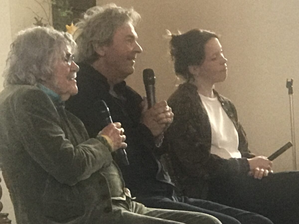 Tijdens de openingsceremonie in de Dorpskerk van Almen: Bennie Jolink, Matthijs van Nieuwkerk en Vera Bon, Stadstroubadour van Deventer