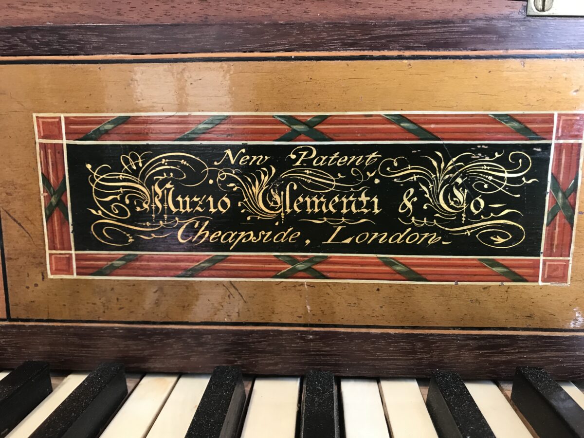 De tafelpiano’s, die Muzio Clementi bouwde, staan in de overgang tussen de instrumenten met een typerend klassiek klankbeeld uit de 18e eeuw en de meer robuuste en romantisch klinkende instrumenten, die vanaf de tweede kwart van de 19e eeuw bon ton worden. Geboren in 1752 in Rome, kreeg Clementi zijn piano-opleiding in Londen. Hij was een veelzijdige figuur: pianist, dirigent, componist, pianoleraar, uitgever én ondernemer. Als pianist toerde hij door heel Europa. In 1780 gaf hij een recital voor Koningin Marie Antoinette en een jaar later voor haar broer, Keizer Joseph II, in Wenen die hem verleidde tot een improvisatie-duel op piano met zijn generatiegenoot Mozart. In 1783 vestigt Clementi zich weer in Londen. Onder zijn studenten bevinden zich later beroemd geworden componisten, zoals Moscheles, Hummel en Field. Als gevierd componist beïnvloede hij Beethoven en, via Field, ook Chopin. In 1798 kocht hij een failliete muziekuitgeverij in het hart van Londen en begon daar met publicatie van bladmuziek: eigen werk en ook dat van onder andere zijn vriend Beethoven. Eveneens had dit bedrijf al een goede naam verkregen als bouwer van tafelpiano’s en Clementi zette deze productie in 1801 voort onder zijn eigen naam. Met succes ontwikkelde hij diverse patenten voor het pianomechaniek en bouwde hij een internationaal verkoopnetwerk op, met agentschappen in Rusland en Spanje. Dit bracht hem economisch geen windeieren. Daardoor kan hij zich vanaf 1810 – naast zijn ondernemerschap als pianobouwer en uitgever van bladmuziek – toeleggen op het schrijven van nieuwe composities. Toen en vandaag wordt Clementi gezien als één van de grote componisten binnen de klassieke muziekwereld. De firma Clementi werd na zijn dood voortgezet als ‘Collard & Collard’ en ontwikkelde zich in de 19e eeuw tot één van de belangrijkste Engelse pianoproducenten.