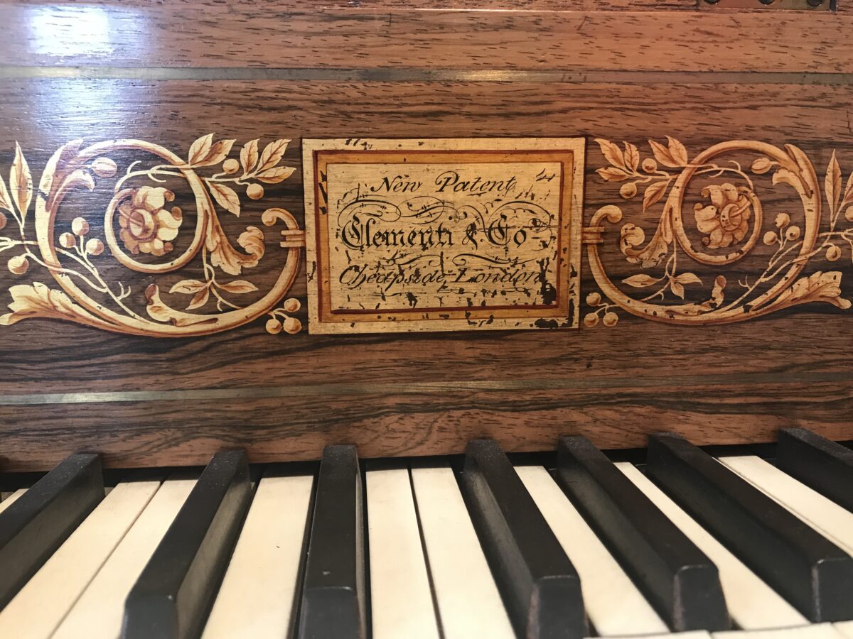Muzio Clementi naamplaatje op de tafelpiano ca 1810 in de collectie van Museum STAAL